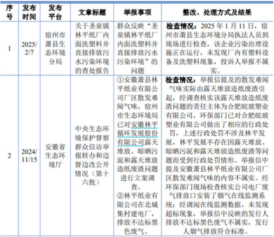 尽管投诉频发,但根据萧县生态环境分局出具的证明,林平发展在报告期内被认定为未发生环境违法违规行为及环境污染事故,且无相关行政处罚。