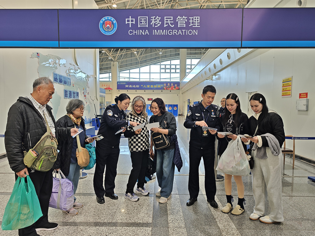 除了口岸现场,南昌边检站同步联合航空公司,在国际航班落地前播放签证便利政策宣传视频,让外籍旅客在抵达前即可提前了解相关规定,减少入境通关时的疑惑。此外,南昌边检站还与本地多家涉外旅行社建立合作机制,通过培训旅行社从业人员、发放宣传资料等方式,将签证便利信息融入旅游产品推介环节,从源头为外籍游客提供准确指引。“现在带外国旅行团更顺畅了,客人对签证政策更了解,我们的服务也更有针对性。”某旅行社负责人表示。