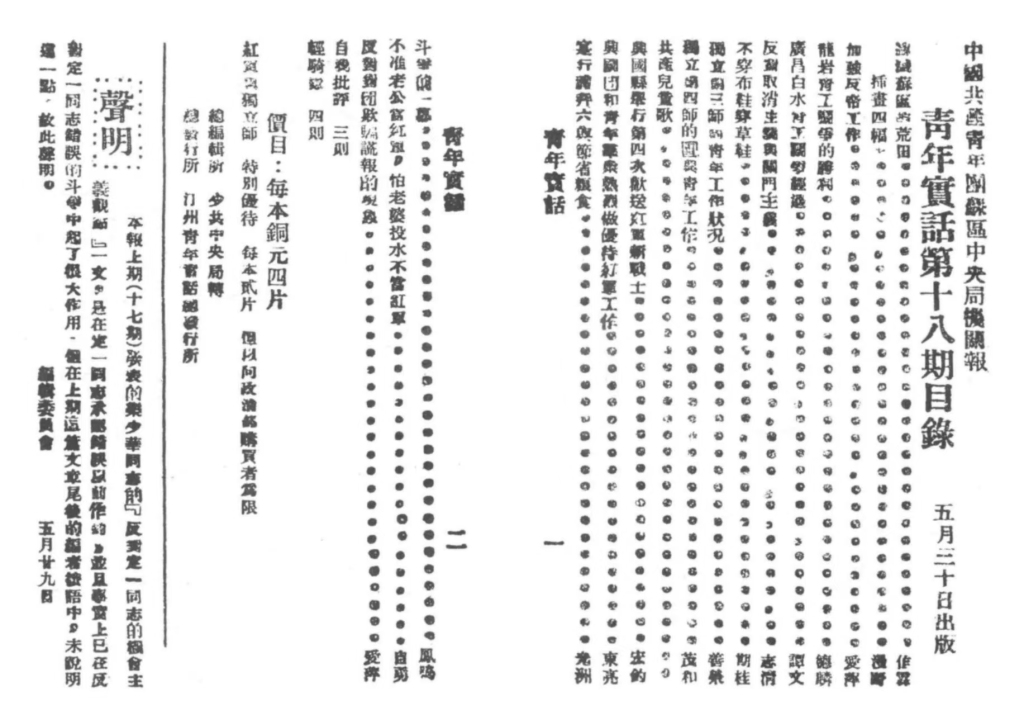 其中,在《燕京馆藏|中央苏区团报《青年实话》残卷两种——斯诺特藏之八》一文中,马、王两位老师针对斯诺特藏中保存的《青年实话》第二卷第二十号(出版于1933年6月25日)残卷(该期共40页,斯诺特藏保存了其中的第9、12页),以及第110期(出版于1934年9月15日)残卷(斯诺特藏保存了其中的第3-4版)进行了仔细的整理并介绍分析有关背景。