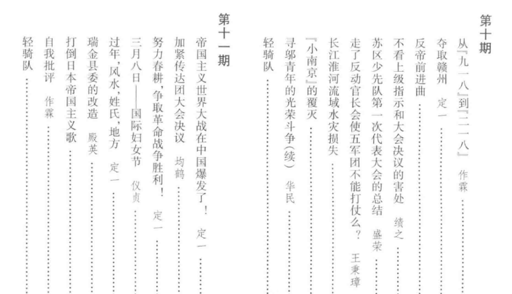 《青年实话》第10期(1932年2月15日出版)和第11期(1932年2月25日出版)目录